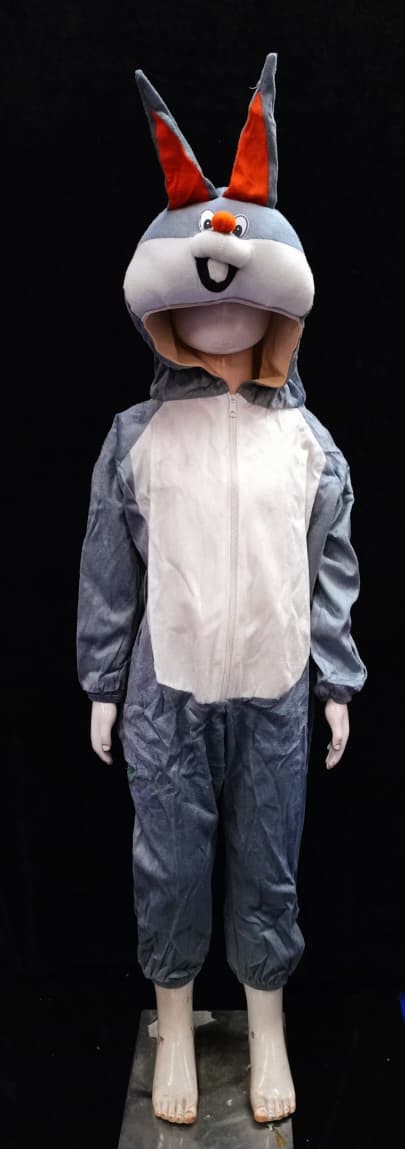 FANCY DRESS TAILORED COSTUME IN GREY AND WHITE VELVET WITH JUMP SUIT PATTERN.
