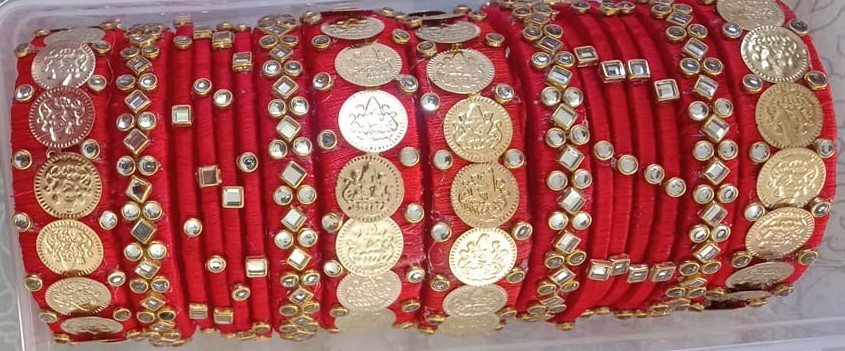GOLD COIN KUNDAN STONE WORK BRIDAL BANGLE SET