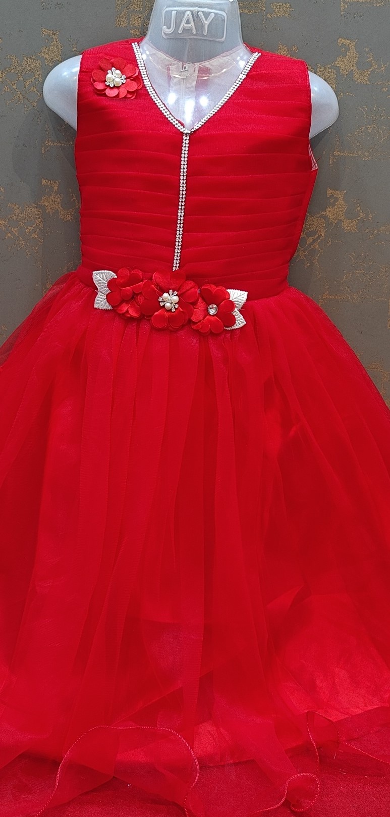 RED COLOUR NET FROCK FOR KIDS 2 TO 9 YEARS