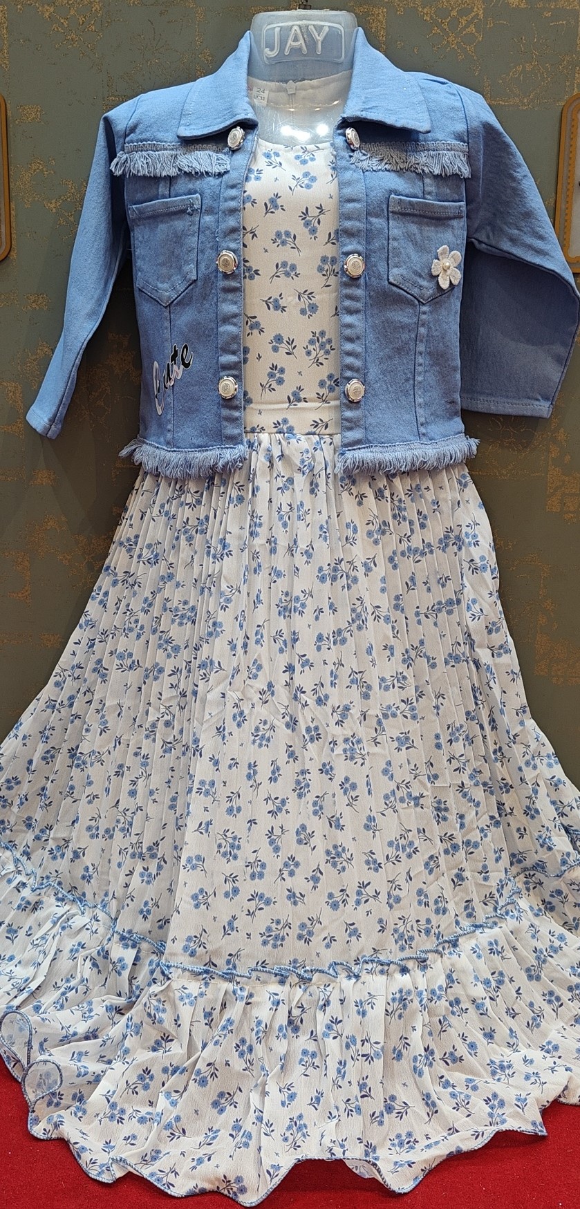 KIDS FROCK WITH DENIM JACKET 4 TO 14 YEARS